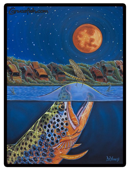 All images and content copyright 2024 Canvasfish.com, LLC. All rights reserved. Livingston, Montana. Welcome to the collection of fish paintings by fish artist Derek DeYoung, whose work is dedicated to the avid angler. A fresh view on a classic subject.