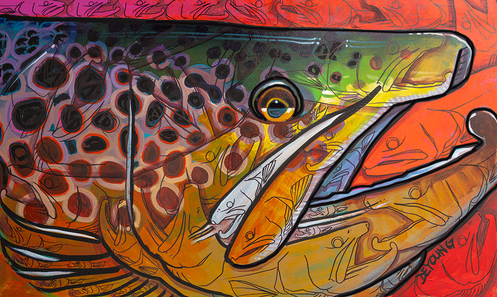 All images and content copyright 2024 Canvasfish.com, LLC. All rights reserved. Livingston, Montana. Welcome to the collection of fish paintings by fish artist Derek DeYoung, whose work is dedicated to the avid angler. A fresh view on a classic subject.