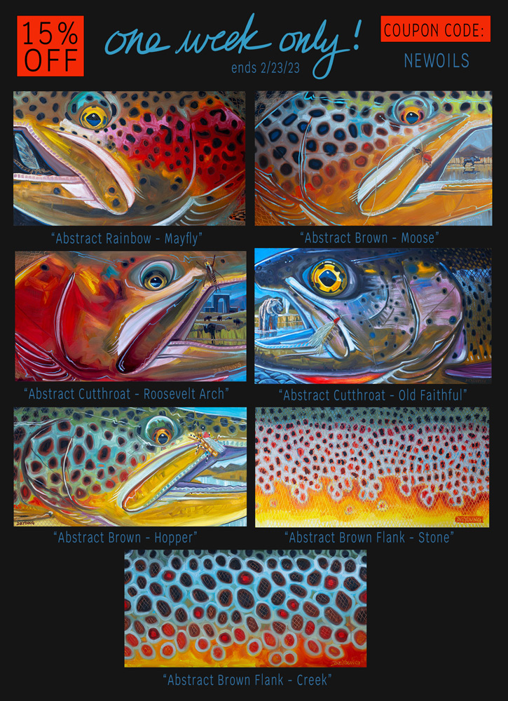 All images and content copyright 2024 Canvasfish.com, LLC. All rights reserved. Livingston, Montana. Welcome to the collection of fish paintings by fish artist Derek DeYoung, whose work is dedicated to the avid angler. A fresh view on a classic subject.